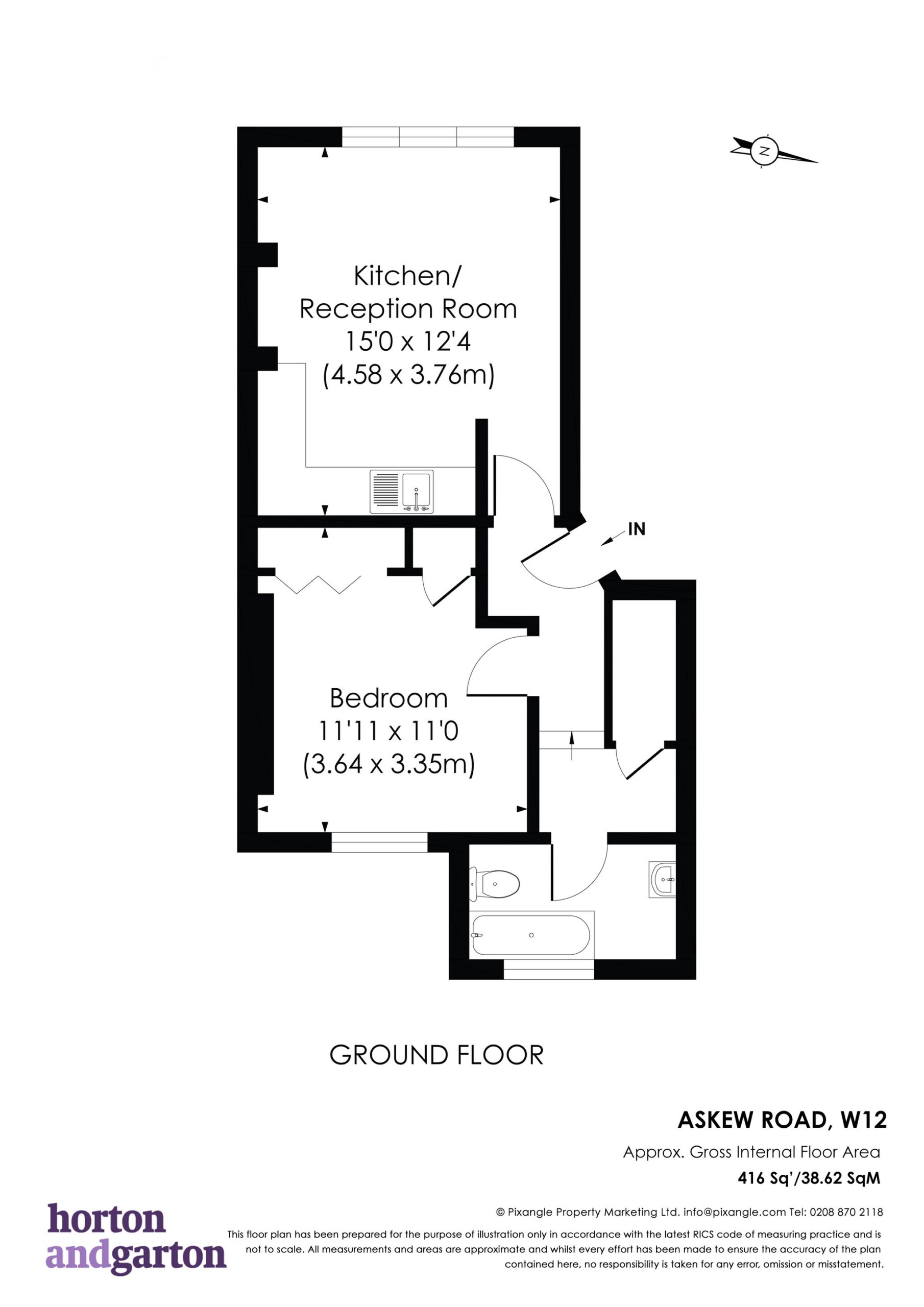 Comprises hallway, an open plan kitchen/reception room, bedroom and bathroom. No chain.