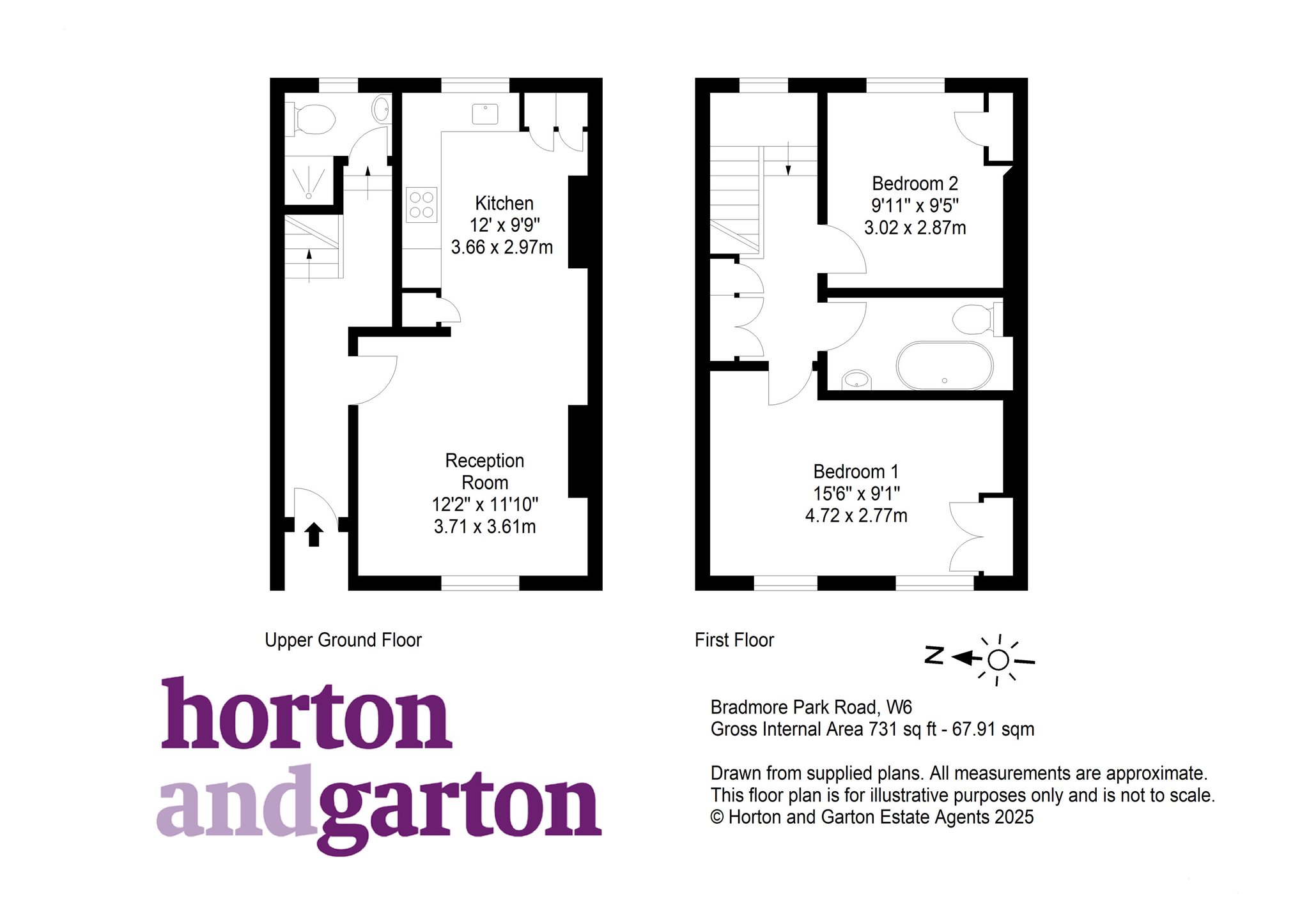 This split level maisonette, circa 731 sq' - 67.92 SqM, is set over the two upper floors of this Victorian mid terrace property ideally positioned close to all amenities of Hammersmith Broadway and Brackenbury Village, King Street and Ravenscourt Park.