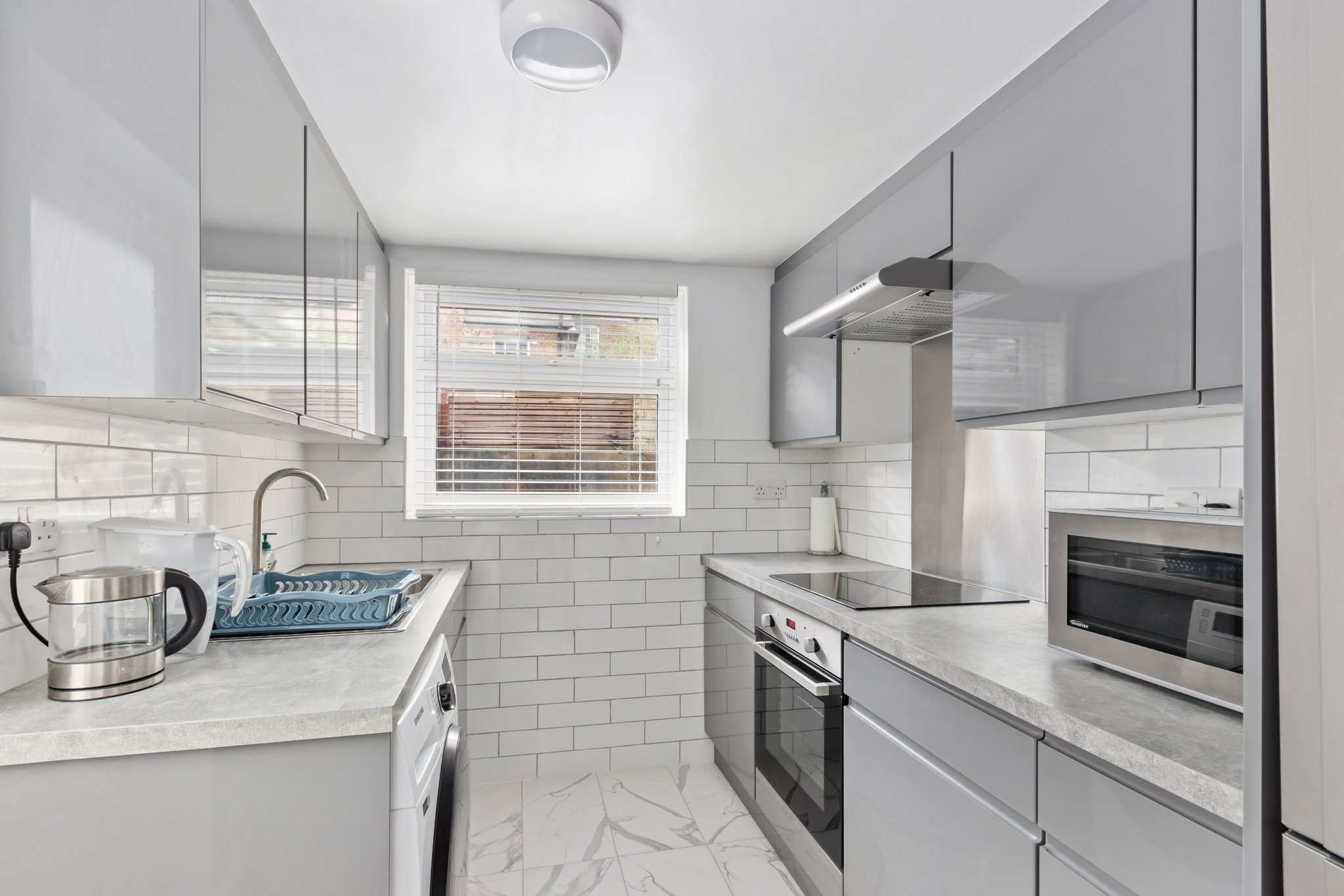 Comprises an entrance hallway, spacious reception room, a separate dining room and a modern fitted kitchen, leading onto a private walled garden. Upstairs, there is a spacious bathroom on the half landing, and two double bedrooms incorporating fitted wardrobes and shelving.