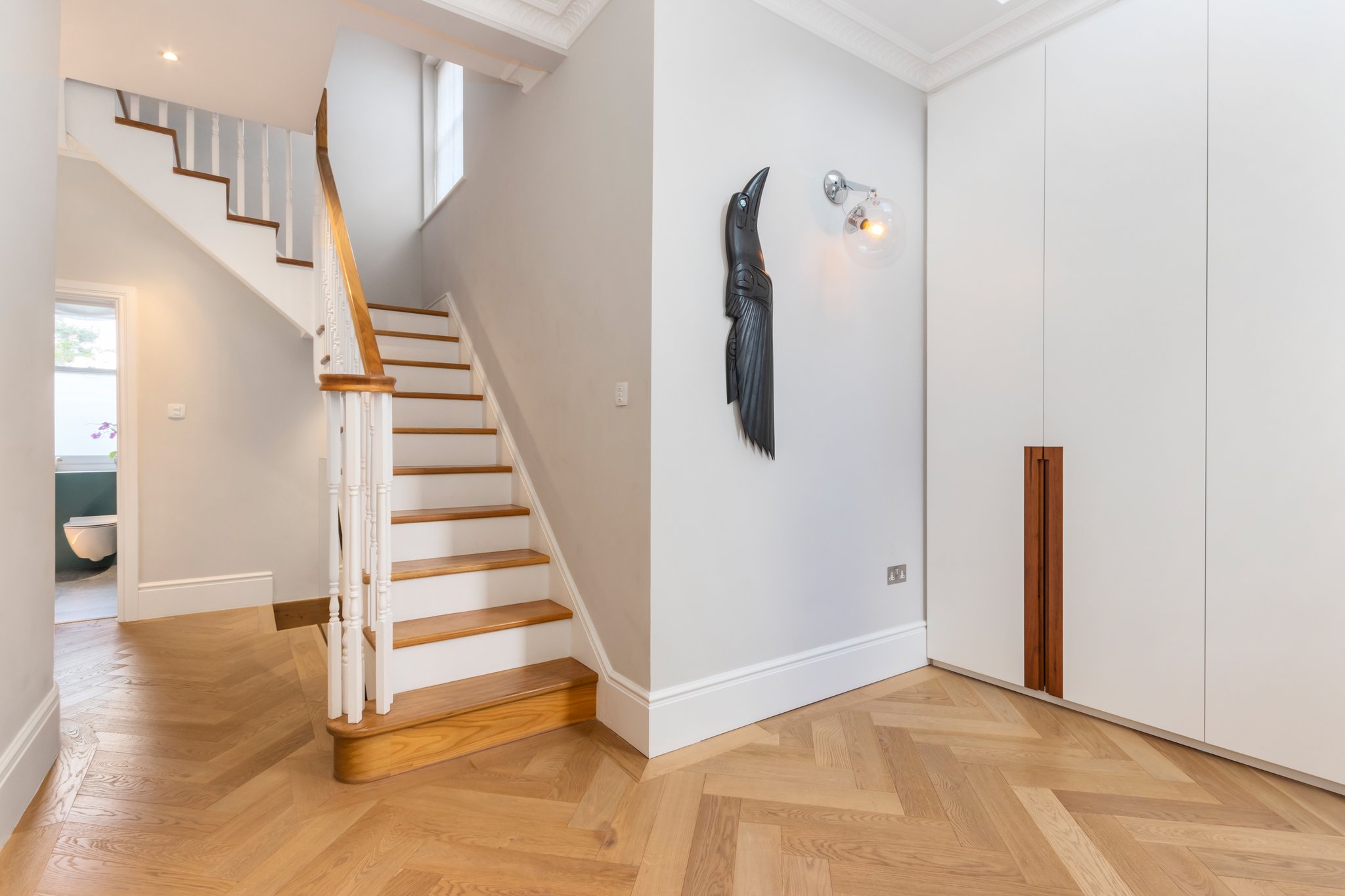 The versatile and extended layout is arranged over four floors and offers excellent reception and entertaining space. Following a detailed and thorough refurbishment, the property now comprises a double reception room, a separate spacious kitchen/dining area, which leads onto a serene, manicured garden, four double bedrooms, an additional study home/office, three stylish bathrooms as well as two guest WC's.