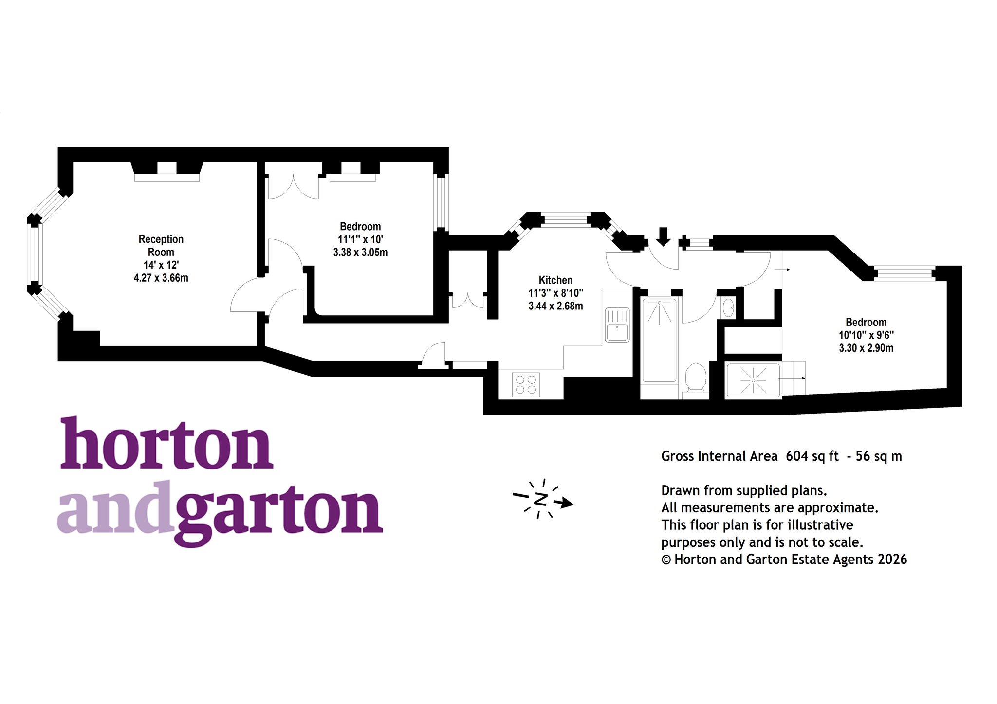 Comprises a private entrance, kitchen, living room, two bedrooms and one bathroom. No chain.