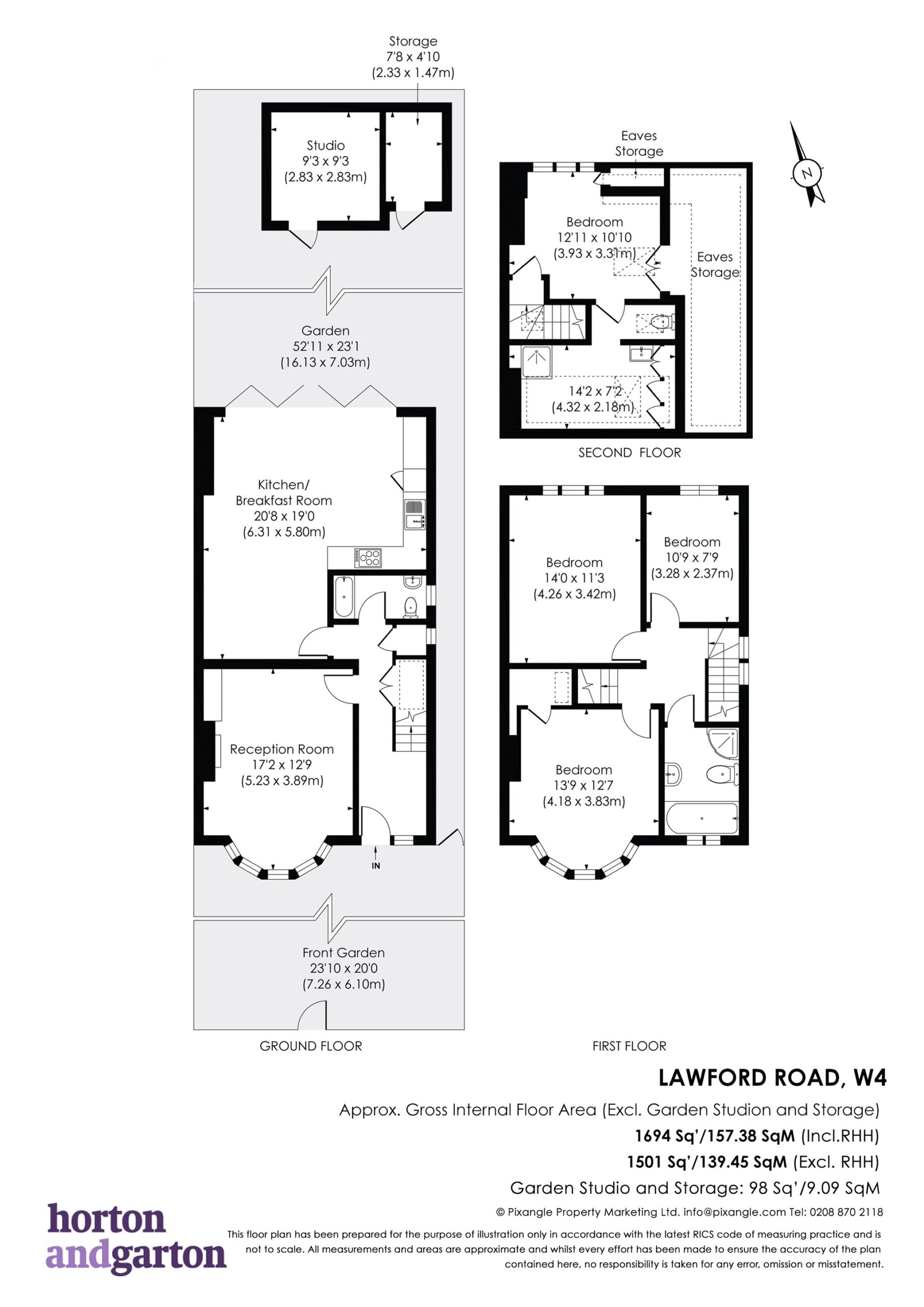 (The property measures 1694 Sq' - 157.38 SqM including restricted head height and not including the garden studio 98 Sq' - 9.09 SqM).