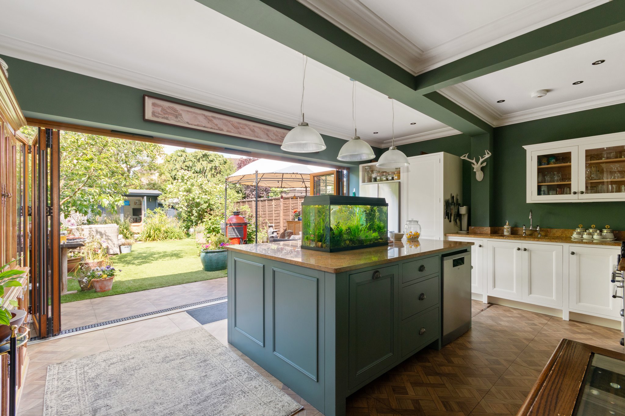 Comprises entrance hallway, a bay fronted reception room with wood burner, guest wc/utility, an extended bespoke fitted kitchen breakfast/dining room with feature island, folding doors open to the outside space. Side access to the front garden.