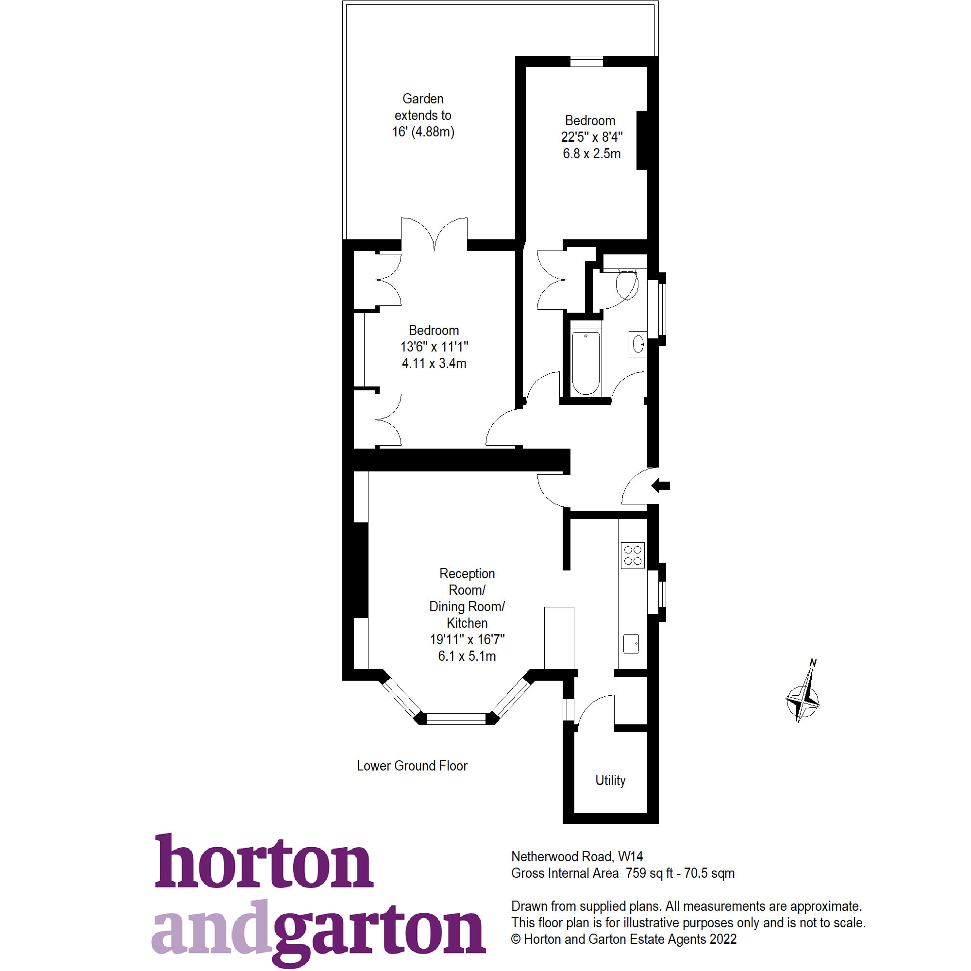 Finished to a high decorative standard throughout, the property comprises a large open-plan living space with a well-equipped kitchen, two double bedrooms and a modern bathroom.