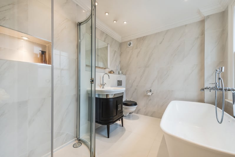 On the two upper floors there are five double bedrooms and four bathrooms (three en-suite) with the principal suite having its own dressing room. Bathroom and shower room fixtures and fittings from C P Hart include both classic fixtures and fittings and contemporary Duravit fixtures and fittings.